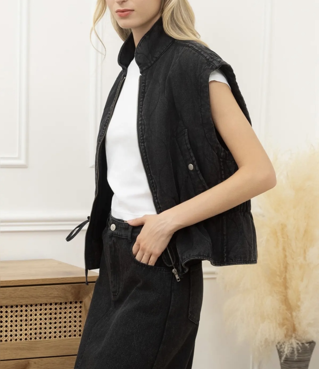 Chaleco gris lavado acolchado. Es 100% de algodón.